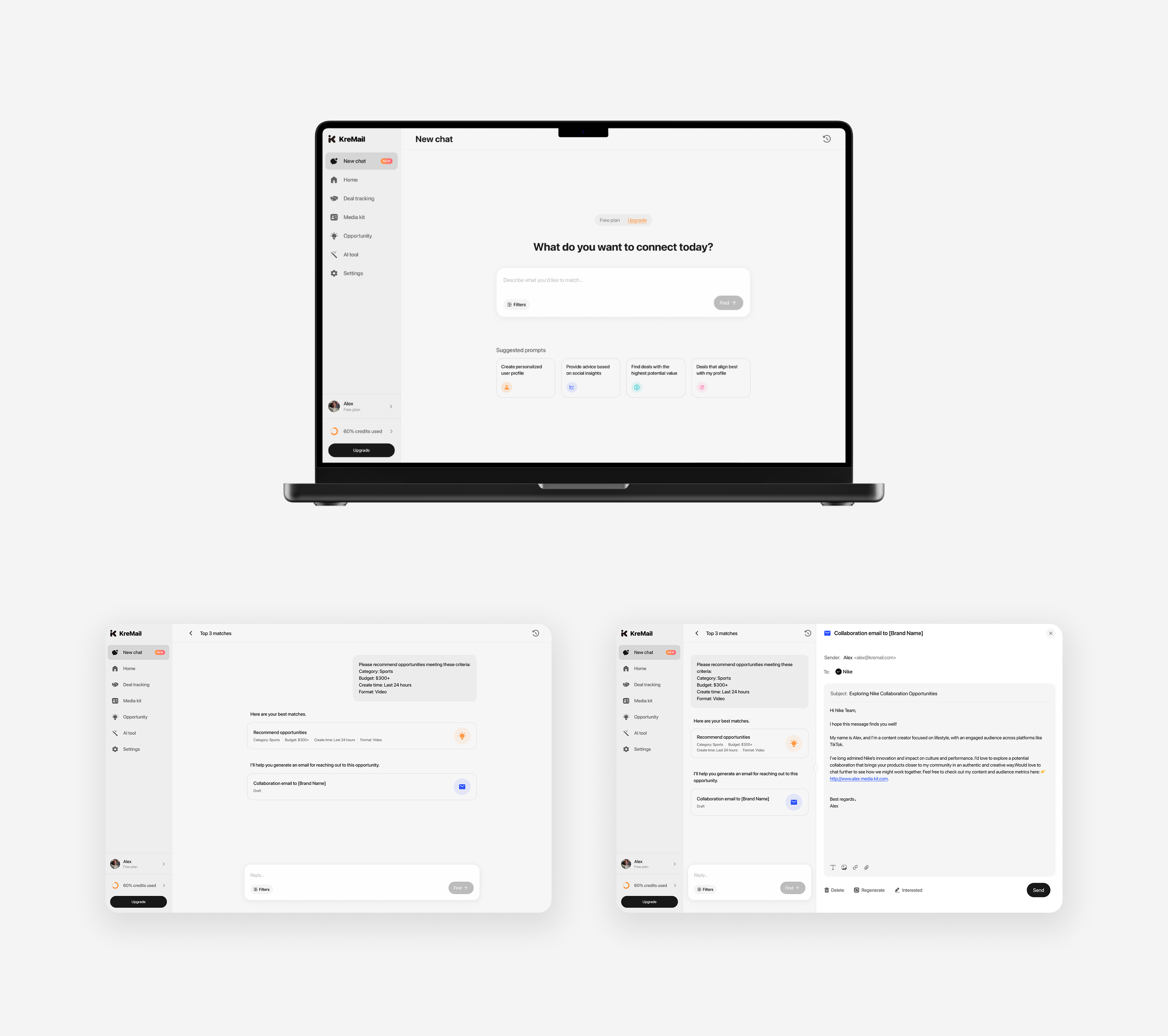 KreMail is an AI-powered media agent that connects creators and brands globally, redefining collaboration through intelligent automation rather than traditional brokers. As a B2C SaaS product, it aims to enhance visual appeal and streamline key user flows to support fast onboarding and frequent use.